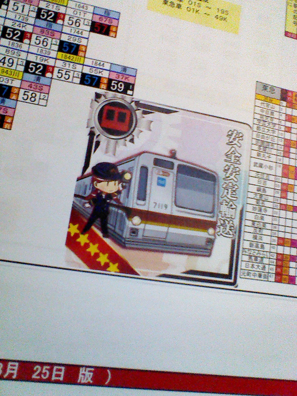 こちらは以前から時刻表に鎮座していた女の子ですがポーズが変わり7000系と10000系も一緒になりました。