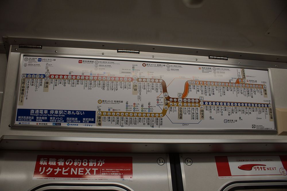 さらに、東京メトロ車内の路線図も直通に対応したものに変更されていました。みなとみらい線、東急線、東京メトロ、西武線、東武線が全て一体となった路線図です。他にも、直通先のみ縮小表示された路線図もあるようです。