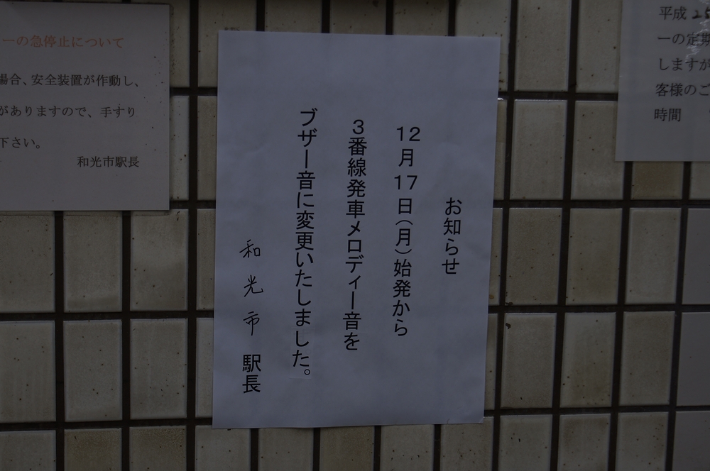 以前、廃止の情報を聞きつけ和光市駅に行ったのですが、その際はこの張り紙に気づかずスルーしてしまいました。