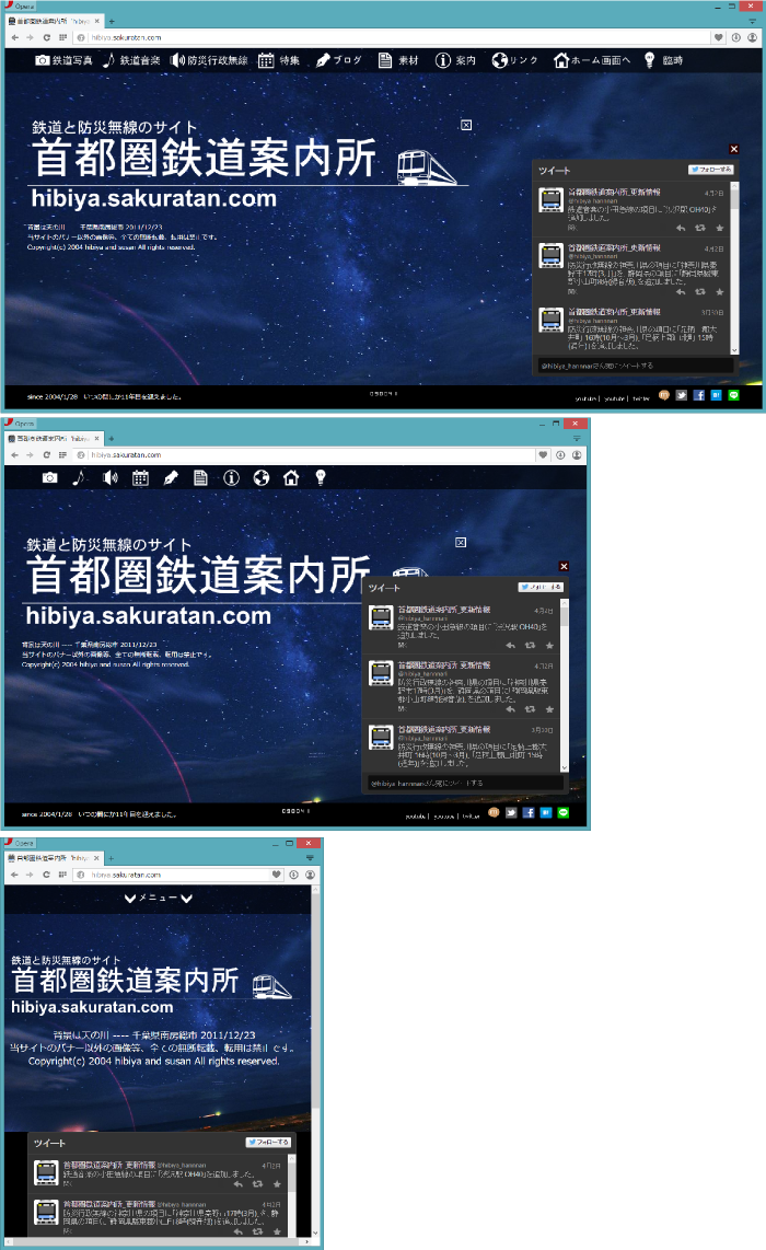 IE10未満での表示の不具合を改善しました。IE8以前のバージョンはサポートを取りやめました。首都圏鉄道案内所をIEで閲覧する場合はバージョン9以降を推奨します。